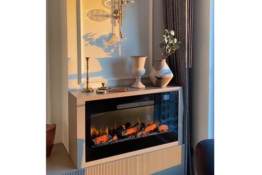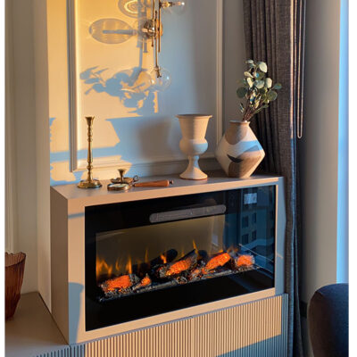 VASKO Elektrikli Şömine Uygulamalarımız, zarif tasarımı ve ileri teknolojisiyle mekanlarınıza modern bir sıcaklık ekler. Yüksek verimli ısıtma kapasitesiyle öne çıkan bu model, gerçekçi alev efektleri ve kullanım kolaylığı ile hem görsel bir zevk sunar hem de soğuk günlerde ideal konfor sağlar.